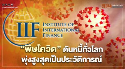 สถาบันการเงินระหว่างประเทศ ( IIF ) ประเมินว่าภายในสิ้นปีนี้ หนี้สินทั่วโลกจะพุ่งสูงสุดเป็นประวัติการณ์ แตะ 277 ล้านล้านดอลลาร์  จากการที่ภาครัฐ-เอกชนใช้จ่ายเพิ่มเพื่อสู้โควิด-19