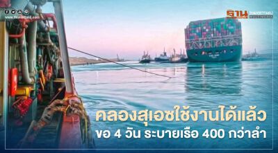 คลองสุเอซกลับมาใช้งานได้แล้ว ขอเวลา 4 วัน ระบายเรือ 400 กว่าลำ