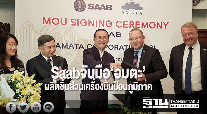 ล่าสุดเป็นการตอกยํ้าการเข้ามาลงทุนของซาบ อีกครั้ง โดยเมื่อวันที่ 5 กันยายน ที่ผ่านมา ทางบริษัท Saab AB จากสวีเดน ได้มีการลงนามในบันทึกข้อตกลงความร่วมมือ(เอ็มโอยู) กับทางบริษัท อมตะ คอร์ปอเรชั่น จำกัด (มหาชน) ในโครงการ Amata Aerospace City ที่จะนำไปสู่การพัฒนาเมืองอัจฉริยะและเมืองอากาศยาน ในนิคมฯอมตะนคร จังหวัดชลบุรี