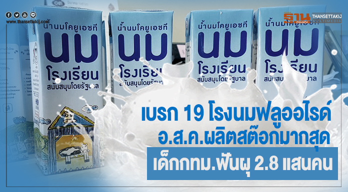 “ผู้ที่ได้รับการจัดสรรพื้นที่จำหน่ายฟลูออไรด์ในโครงการนมโรงเรียน เทอมที่ 1/2561 กรณีหาก อย.ต่อใบอนุญาตให้ พบว่าองค์การส่งเสริมกิจการโคนมแห่งประเทศไทย (อ.ส.ค.) ได้สิทธิ์จำหน่ายสูงสุด 1.45 แสนถุง-กล่องต่อวัน รองลงมาคือสหกรณ์โคนมวังนํ้าเย็น จำกัด 1.02 แสนถุง-กล่องต่อวัน ”