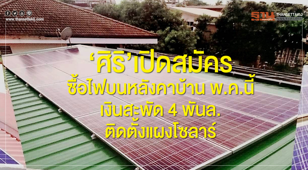 “ศิร”เดินหน้าโครงการโซลาร์ภาคประชาชนปีนี้ 100 เมกะวัตต์ พ.ค.นี้ เปิดให้บ้านอยู่อาศัย สมัครเข้าร่วมขายไฟฟ้าให้กับรัฐได้ ในราคารับซื้อ 1.68 บาทต่อหน่วย ใช้เกณฑ์พิจารณาใครมาก่อนได้สิทธิก่อน คาดจะมีเม็ดเงินสะพัดในระบบ 4 พันล้านบาท
