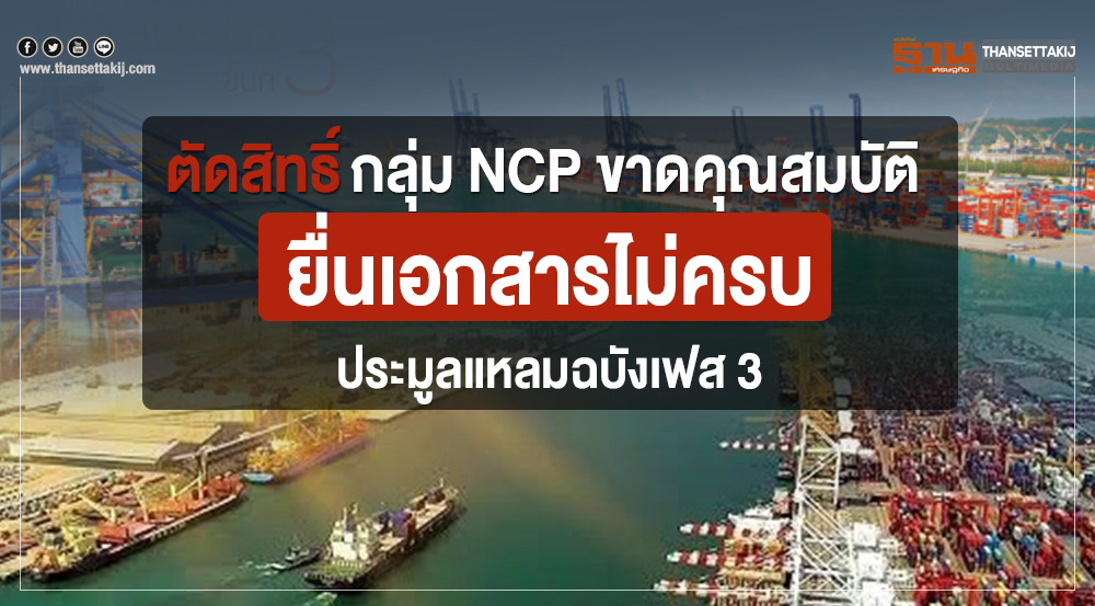 การท่าเรือ ตัดสิทธิ์กลุ่ม NCP ชิงแหลมฉบังเฟส 3 เหตุขาดคุณสมบัติ ยื่นเอกสาร เพิ่มเติมไม่ครบตามกำหนด เดินหน้าเจรจากลุ่ม GPC