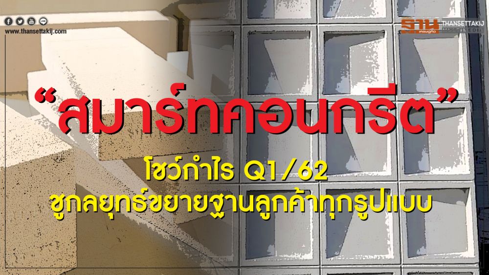 นายรังสี ทีปกรสุขเกษม กรรมการผู้จัดการ บริษัทสมาร์ทคอนกรีตจำกัด(มหาชน) (SMART) ผู้ผลิตและจำหน่ายอิฐมวลเบาด้วยระบบอบไอน้ำภายใต้ความดันสูงเพื่อใช้ในงานก่อสร้างและงานกั้นผนังอาคารเปิดเผยว่าผลประกอบการไตรมาส1 ปี2562 บริษัทมีรายได้รวม107.198 ล้านบาทเพิ่มขึ้นจากช่วงเดียวกันของปีก่อนที่มีรายได้รวม88.447 ล้านบาทจำนวน18.751 ล้านบาทหรือเพิ่มขึ้น 21.20 % และมีกำไรสุทธิ2.717 ล้านบาทเพิ่มขึ้นจากช่วงเดียวกันปีก่อนที่มีขาดทุนสุทธิ8.058 ล้านบาท