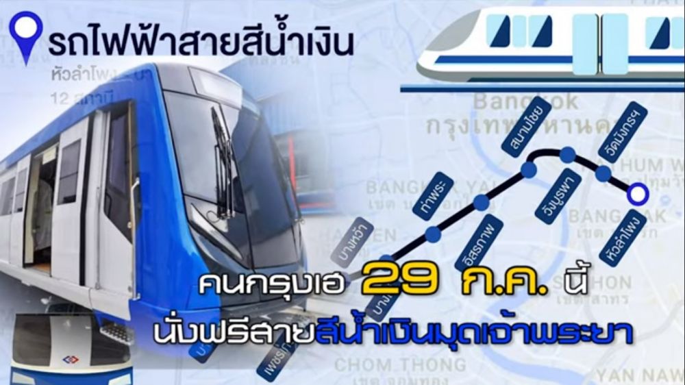 เริ่มวันนี้ เปิดให้ประชาชนนั่งฟรี รถไฟฟ้าสายสีน้ำเงินส่วนต่อขยาย 5สถานี สถานีวัดมังกร-ท่าพระ (มีคลิป)