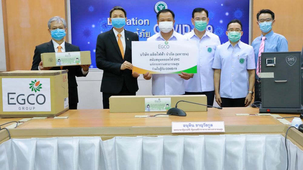 นายดนุชา สิมะเสถียร รองกรรมการผู้จัดการใหญ่ สายงานพัฒนาธุรกิจ ในประเทศ บริษัท ผลิตไฟฟ้า จำกัด (มหาชน) หรือ เอ็กโก กรุ๊ป เปิดเผยว่า บริษัทได้ดำเนินการมอบหลอดไฟ UVC ขนาด 15W และ 30W จำนวน 1,000 หลอด มูลค่ากว่า 700,000 บาท ผ่านกระทรวงสาธารณสุข เพื่อสนับสนุนกลุ่ม SOS to Medical Staff in COVID–19 Fight นำไปผลิต “ตู้อบฆ่าเชื้อหน้ากากอนามัยด้วยแสง UVC” จำนวน 250 ตู้ เพื่อส่งมอบให้แก่โรงพยาบาลทั่วประเทศ