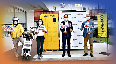 ประกอบกับในช่วง 2-3 ปีที่ผ่านมา การใช้รถมอเตอร์ไซค์กลายเป็นที่นิยมกันอย่างแพร่หลาย จากการเติบโตอย่างรวดเร็วของธุรกิจ Delivery Service และแนวโน้มการใช้ยานยนต์ไฟฟ้า หรืออีวี (EV) ในประเทศไทยก็เพิ่มสูงขึ้นต่อเนื่อง จึงเป็นที่มาของแนวคิดการออกแบบธุรกิจเพื่อเป็นต้นแบบนวัตกรรมด้านพลังงานให้กับประเทศ อย่าง Swap & Go บริษัทในเครือ ปตท. ที่ให้บริการสลับแบตเตอรี่สำหรับผู้ใช้งานมอเตอร์ไซค์ไฟฟ้าแบบไม่ต้องรอชาร์จ เป็นการสร้าง Business Ecosystem ที่เพิ่มศักยภาพการใช้พลังงานสะอาด สู่การสร้างสรรค์นวัตกรรมที่สร้างการเติบโตทั้งด้านสังคม สิ่งแวดล้อม และสร้างมูลค่าเพิ่มทางเศรษฐกิจให้กับประเทศให้เติบโตไปพร้อมกันอย่างยั่งยืน โดยในปี 2564 จะเปิดให้บริการสถานีสลับแบตเตอรี่ จำนวน 22 แห่ง ครอบคลุมทั่วกรุงเทพฯ แบ่งเป็น ภายในสถานีบริการน้ำมัน พีทีที สเตชั่น (ปั๊ม ปตท.) จำนวน 19 แห่ง และพื้นที่ภายนอก พีทีที สเตชั่น อีก 3 แห่ง ที่พร้อมนำร่องให้บริการลูกค้าในกลุ่ม Delivery Service และมีแผนขยายการให้บริการในกลุ่มลูกค้าอื่น ๆ ในระยะถัดไป