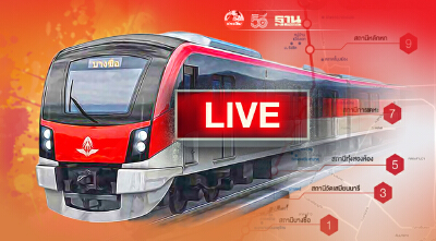 เมื่อถึงเวลาถ่ายทอดสด สามารถคลิกที่รูปรถไฟชานเมืองสายสีแดงด้านล่าง เพื่อรับชมการถ่ายทอดสด