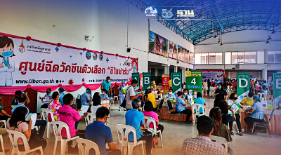 นายก อบจ.อุบลราชธานี กล่าวเพิ่มเติมว่า วันนี้เราได้เตรียมสถานที่ศูนย์โอท็อปเซ็นเตอร์ อบจ.อุบลราชธานี ที่สามารถรองรับประชาชนได้มากกว่าพันคน เราได้จัดให้เว้นระยะห่าง มีการตรวจคัดกรอง มีจุดที่ลงทะเบียน เช็คประวัติการแพ้ยาต่าง ๆ จนถึงกระบวนการการฉีดวัคซีน