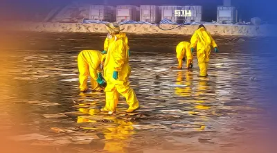ระยองเร่งขจัดคราบน้ำมันรั่วทั้งในทะเล-บนหาด มวลคราบน้ำมันก้อนใหญ่กว่า 47 ตารางกิโลเมตร เคลื่อนตัวมุ่งหน้าสมทบอ่าวแม่รำพึง หวั่นกระจายตัวถึงอ่าวพร้าวบนเกาะเสม็ด เร่งวางทุ่นปกป้องพื้นที่