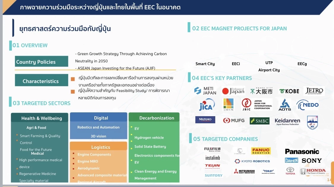 1.การเพิ่มศักยภาพให้พื้นที่ EEC เป็นส่วนหนึ่งของห่วงโซ่อุปทานการผลิตของญี่ปุ่น โดยเฉพาะในอุตสาหกรรมอนาคต ได้แก่