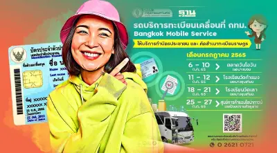 โดยรถบริการทะเบียนเคลื่อนที่ กทม. (Bangkok Mobile Service) ให้บริการทำบัตรประชาชน และคัดสำเนาทะเบียนราษฎร ตลอดเดือนกรกฎาคม 2565 นี้ ซึ่งมีรายละเอียดต่าง ๆ ดังนี้