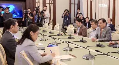 บ่ายวันนี้ (16 เมษายน 2568) ที่ทำเนียบรัฐบาล นายพิชัย ชุณหวชิร รองนายกรัฐมนตรี และรมว.คลัง และนายศุภวุฒิ สายเชื้อ ที่ปรึกษาด้านนโยบายของนายกรัฐมนตรี ได้หารือร่วมกับนายเศรษฐพุฒิ สุทธิวาทนฤพุฒิ ผู้ว่าการธนาคารแห่งประเทศไทย (ธปท.) และคณะ เพื่อรับฟังข้อมูลร่วมกันด้านการเงินการคลัง ก่อนเดินทางไปเจรจากับรัฐบาลสหรัฐอเมริกา เกี่ยวกับผลกระทบจากนโยบายด้านเศรษฐกิจของประธานาธิบดีโดนัลด์ ทรัมป์ โดยใช้เวลาหารือนานกว่า 1 ชั่วโมง