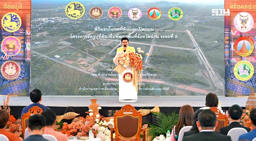 นางสาวจริยาพร จิตต์ใจมั่น รองอธิบดีกรมโยธาธิการและผังเมือง กล่าวเน้นย้ำว่า กรมโยธาธิการและผังเมือง ได้ดำเนินการจัดรูปที่ดินเพื่อพัฒนาพื้นที่ ตามพระราชบัญญัติจัดรูปที่ดินเพื่อพัฒนาพื้นที่ พ.ศ. 2547 เพื่อใช้เป็นเครื่องมือในการพัฒนาพื้นที่เมืองและชุมชนโดยเชิญชวนให้ประชาชนเจ้าของที่ดินนาแปลงที่ดินมารวมกันและปันที่ดินของตนส่วนหนึ่ง เพื่อใช้พัฒนาระบบโครงสร้างพื้นฐานที่ได้มาตรฐาน เข้าถึงที่ดินทุกแปลงโดยไม่ต้องเวนคืนที่ดิน พร้อมกับการจัดรูปแปลงที่ดินใหม่ให้ใช้ประโยชน์ได้ดีขึ้น ปัจจุบันมีโครงการแล้วในพื้นที่ 54 จังหวัด 71 โครงการ ก่อให้เกิดการพัฒนาที่ดิน 19,225 ไร่ คิดเป็นจำนวนแปลงที่ดินที่มีมูลค่าเพิ่มสูงขึ้น 5,816 แปลง มูลค่าที่ดินเพิ่มขึ้นเป็นเงิน 50,039 ล้านบาท ถนนได้รับการพัฒนา เป็นระยะทาง 217 กิโลเมตร ซึ่งทำให้รัฐประหยัดงบประมาณเวนคืนที่ดิน กว่า 2,772 ล้านบาท สำหรับโครงการจัดรูปที่ดิน เพื่อพัฒนาพื้นที่จังหวัดน่าน ระยะที่ 2 ได้รับการพัฒนา โครงสร้างพื้นฐานและออกโฉนดที่ดินแปลงใหม่แล้วเสร็จ บนพื้นที่ 532 ไร่เศษ มีแปลงที่ดิน 185 แปลง เจ้าของที่ดิน 146 ราย ที่มีความพร้อมและยินดีเสียสละที่ดินให้กับโครงการ เพื่อให้ที่ดินได้รับการพัฒนาและมีระบบโครงข่ายคมนาคมที่สะดวก ซึ่งกรมโยธาธิการและผังเมืองได้จัดสรรงบประมาณเพื่อใช้ในการก่อสร้างถนน ตามผังเมืองรวมเมืองน่านภายในโครงการ เป็นเงินทั้งสิ้น 125 ล้านบาท และได้เปิดเป็นทางสาธารณะให้ประชาชนใช้สัญจรอย่างสะดวกและเข้าถึงที่ดินทุกแปลง ซึ่งนับว่าการจัดรูปที่ดิน ได้มีส่วนช่วยกระตุ้นเศรษฐกิจในพื้นที่ ถือเป็นประโยชน์กับจังหวัดน่านเป็นอย่างยิ่ง