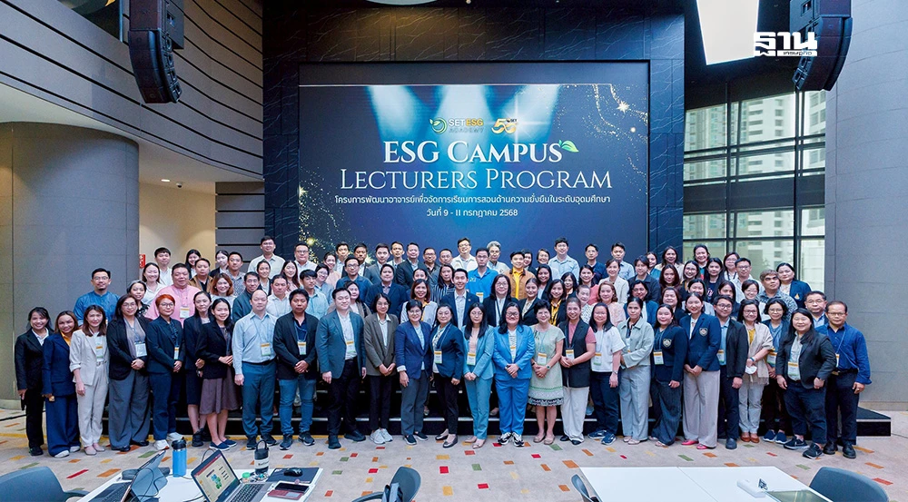 ตลาดหลักทรัพย์แห่งประเทศไทย จัดโครงการพัฒนาอาจารย์เพื่อจัดการเรียนการสอนด้านความยั่งยืนในระดับอุดมศึกษา (ESG Campus Lecturers Program) มุ่งยกระดับความรู้และทักษะที่จำเป็นในการสร้างบุคลากรด้านความยั่งยืน (ESG Professionals) ให้เพียงพอและตรงกับความต้องการของภาคธุรกิจ เพื่อเพิ่มศักยภาพการแข่งขันและขับเคลื่อนองค์กรสู่ความยั่งยืนในระยะยาว พร้อมส่งเสริมและสนับสนุนการแลกเปลี่ยนความรู้และประสบการณ์ระหว่างภาคธุรกิจและภาคการศึกษา โดย รัตน์วลี อนันตานานนท์ ผู้ช่วยผู้จัดการ ตลาดหลักทรัพย์ฯ กล่าวเปิดโครงการ และมีอาจารย์เข้าร่วม 88 ท่าน จาก 27 มหาวิทยาลัยทั่วประเทศ เมื่อวันที่ 9 - 11 กรกฎาคม 2568