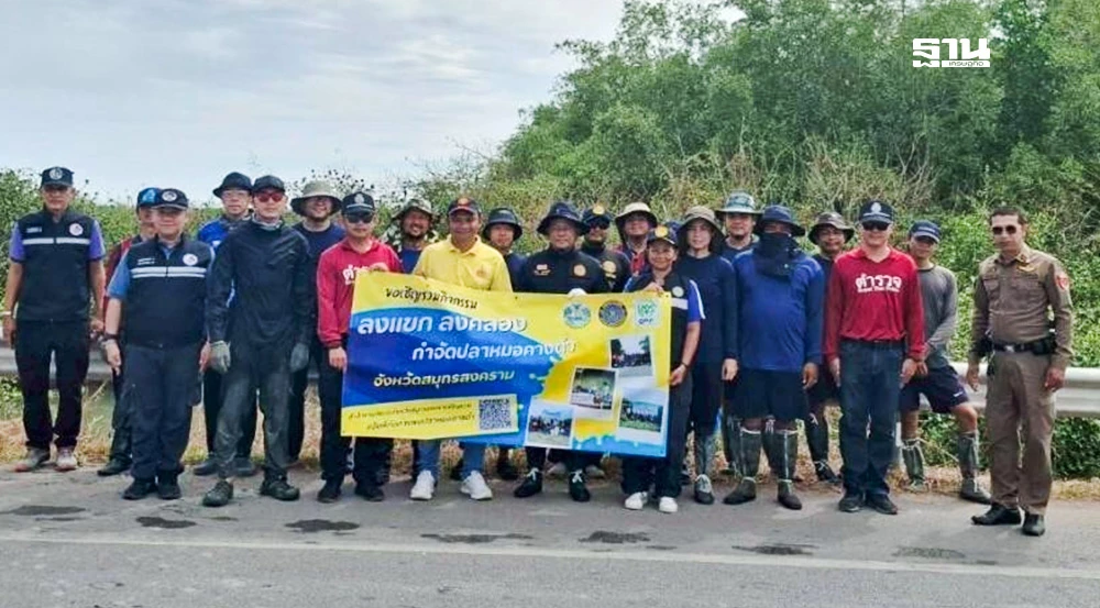 ล่าสุด ประมงจังหวัดสมุทรสงคราม ร่วมกับ หน่วยงานในพื้นที่ กอ.รมน. ศรชล. ตำรวจภูธร คณะกรรมการขับเคลื่อนนโยบายของกรมประมง ลงพื้นที่จัดกิจกรรม "ลงแขกลงคลอง" ต่อเนื่องเป็นครั้งที่ 6/2568 จับปลาออกจากคลองหมื่นหาญ ต.ลาดใหญ่ อ.เมือง จ.สมุทรสงคราม โดยใช้อวนทับตลิ่ง ควบคู่ การโรยกากชา เพิ่มประสิทธิภาพในการจับปลามากขึ้น