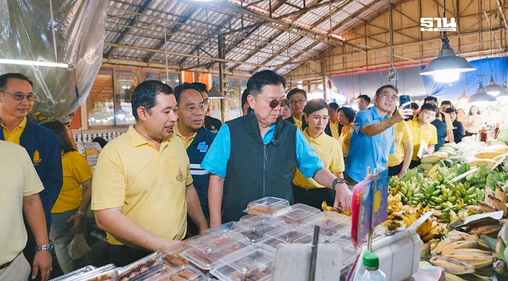 นายจตุพร บุรุษพัฒน์ รัฐมนตรีว่าการกระทรวงพาณิชย์ ลงพื้นที่ตรวจเยี่ยมและติดตามสถานการณ์การจำหน่ายสินค้า ณ ตลาดดอนหวาย จังหวัดนครปฐม เมื่อวันเสาร์ที่ 26 กรกฎาคม 2568 จังหวัดนครปฐม