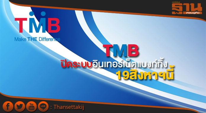 ทีเอ็มบีปิดระบบอินเทอร์เน็ตแบงก์กิ้ง 19สิงหาคมนี้