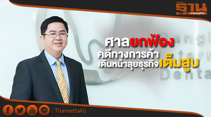 "เดนทัล คอร์ปอเรชั่น" เผยศาลทรัพย์สินทางปัญญาและการค้าระหว่างประเทศกลางมีคำพิพากษายกฟ้องกรณีถูกกล่าวหาละเมิดความลับทางการค้า พร้อมออกหนังสือรับรองคดีถึงที่สิ้นสุดแล้ว 9 ส.ค. 2560 เตรียมเดินหน้าขยายพร้อมทุ่มงบกว่า 450 ล้านบาท ผุดโรงพยาบาลทันตกรรมย่านเพลินจิต คาดเปิดให้บริการได้ภายในปี'62 ดันรายได้โตก้าวกระโดด พุ่งแตะ 1 พันล้านบาท ภายในปี'63