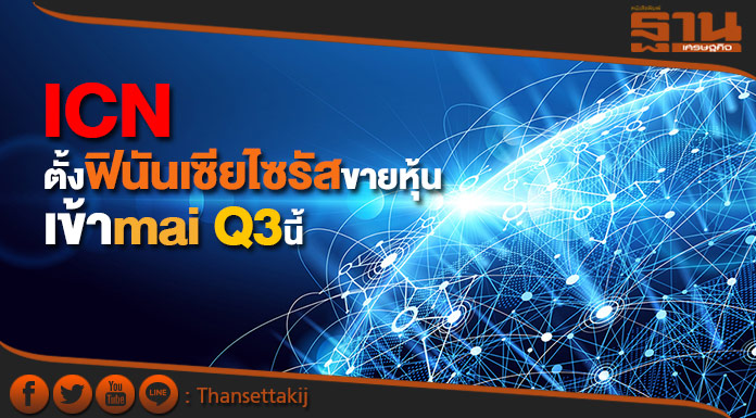 ICN เหมาวางระบบสื่อสารโทรคมนาคม งานก่อสร้าง และวางระบบไฟฟ้า แต่งตั้งบล.ฟินันเซีย ไซรัส ขายหุ้นไอพีโอ 120 ล้านหุ้น หลัง ก.ล.ต. นับหนึ่งแบบไฟลิ่งเดินหน้าตามแผนคาดเข้าซื้อขายในตลาดหลักทรัพย์ mai ได้ในไตรมาส 3 ปีนี้ ระดมทุนใช้เป็นทุนหมุนเวียนรองรับงานโครงการขนาดใหญ่