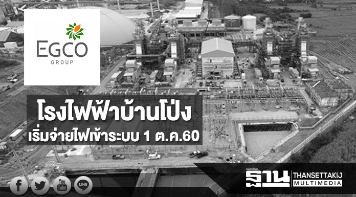 EGCO เผย "โรงไฟฟ้าบ้านโป่ง" กำลังการผลิตรวม 256 เมกะวัตต์ เริ่มเดินเครื่องเชิงพาณิชย์และจ่ายไฟฟ้าเข้าระบบแล้วเมื่อวันที่ 1 ต.ค.60
