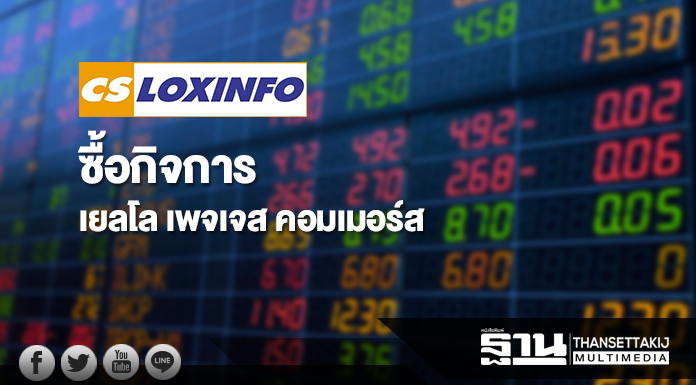บริษัท ซีเอส ล็อกซอินโฟ จำกัด (มหาชน) หรือ CSL แจ้งว่า บริษัท เทเลอินโฟ มีเดีย จำกัด (มหาชน) หรือทีเอ็มซี ซึ่งเป็นบริษัทย่อยได้เข้าลงทุนในบริษัท เยลโล เพจเจส คอมเมอร์ส จำกัด โดยเข้าซื้อหุ้นจำนวน 9,994 หุ้น หรือ 99.94% ของทุนชำระแล้ว ในราคามูลค่า 85,948.40 บาท จากนายพิชญ์ พาณิชย์ตระกูล ซึ่งไม่มีความเกี่ยวข้องกับบริษัท