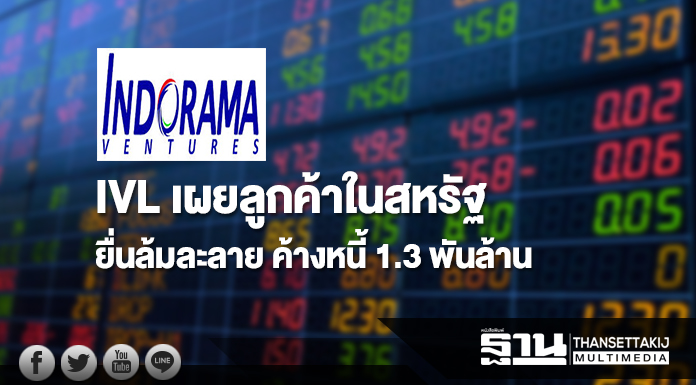 IVL เผย M&G PolymersUSA,LLC ลูกค้ายื่นล้มละลาย กระทบยอดหนี้ค้างชำระ 1,300 ล้านบาท ผู้บริหาร IVL มั่นใจไม่กระทบฐานะการเงินและกำไรของบริษัท ด้านราคาหุ้นร่วงรับข่าว
