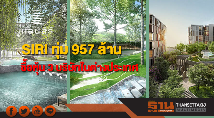 "แสนสิริ" ขยายการลงทุนต่างประเทศ ลุยซื้อหุ้น 3 กิจการ มูลค่ารวม 957.08 ล้านบาท