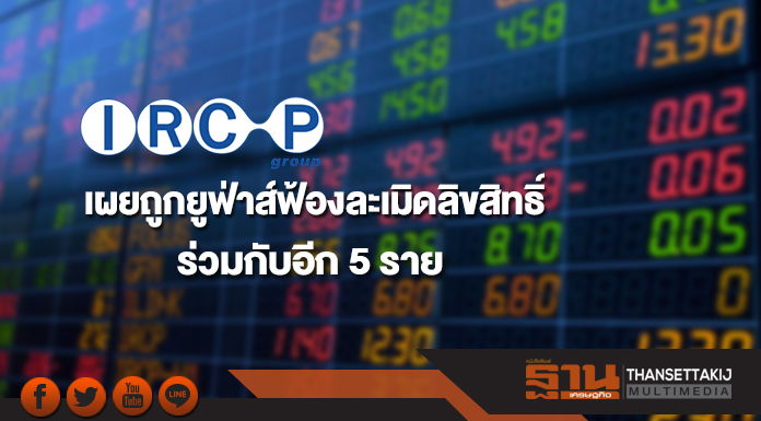 บริษัท อินเตอร์เนชั่นแนล รีเสริช คอร์ปอเรชัน จำกัด (มหาชน) หรือ IRCP แจ้งว่า เมื่อวันที่ 21 ส.ค.2560 บริษัท ยูฟ่าส์ (ประเทศไทย) จำกัดในฐานะโจทก์ในคดีได้ยื่นฟ้องบริษัทฯ และจําเลย อีก 5 ราย โดยบริษัทฯ เป็นจําเลยที่ 6 ต่อศาลทรัพย์สินทางปัญญาและการค้าระหว่างประเทศกลางในข้อหาละเมิดลิขสิทธิ และเรียกค่าเสียหายเป็นจํานวน 377 ,777, 568 บาท พร้อมดอกเบี้ยอัตรา 7.5% ต่อปีจากต้นเงินดังกล่าว นับจากวันฟ้องจนกว่าจะชําระแล้วเสร็จและค่าเสียหายจากการใช้ประโยชน์ลิขสิทธิเดือนละ 10 ล้านบาท นับจากวันฟ้องเป็นต้นไป จนกว่าจะหยดุการละเมิดลิขสิทธิ