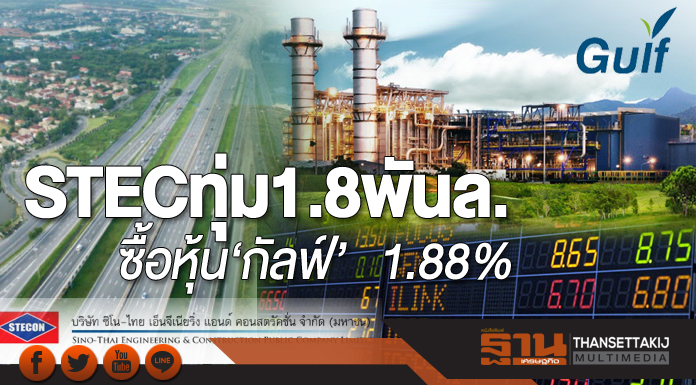 นายวรพันธ์ ช้อนทอง กรรมการรองผู้จัดการ สายงานการเงินและบริหาร บริษัท ซิโน-ไทย เอ็นจีเนียริ่ง แอนด์ คอนสตรัคชั่น จำกัด (มหาชน) หรือ STEC เปิดเผยว่า ที่ประชุมคณะกรรมการบริหารของบริษัท มีมติอนุมัติให้บริษัท เข้าลงทุนโดยจองซื้อหุ้นสามัญที่ออกใหม่เพื่อเสนอขายให้แก่ประชาชนเป็นการทั่วไปครั้งแรก (IPO) ของ บริษัท กัลฟ์ เอ็นเนอร์จี ดีเวลลอปเมนท์ จำกัด (มหาชน) หรือ GULF ประมาณ 1.88% ของจำนวนหุ้นสามัญที่ออกและชำระแล้วทั้งหมดของบริษัท ในวงเงิน 1,800 ล้านบาท ภายในวันที่ 17 พฤศจิกายน 2560