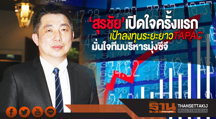 อดีตบิ๊กทาพาโก้ “สุรชัย สุวรรธนะกุล” เปิดใจลงทุนหุ้น TAPAC เป้าหมายลงทุนระยะยาว ไม่มีเจตนาสร้างราคาหุ้น พร้อมรับผิดชอบต่อกฎเกณฑ์ก.ล.ต. และสนับสนุนทีมบริหารชุดใหม่ ดำเนินธุรกิจภายใต้หลักธรรมาภิบาล