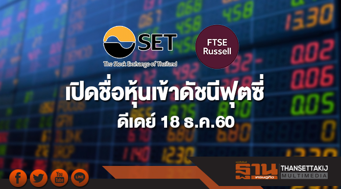 เปิดชื่อหุ้นเข้าดัชนีฟุตซี่ ดีเดย์ 18 ธ.ค.60 ชี้ EA ติดกลุ่ม Large Cap