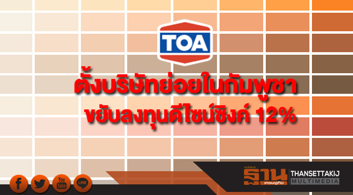 บอร์ด TOA ไฟเขียวตั้งบริษัทย่อยในกัมพูชา ลุยตั้งโรงงานผลิตสี พร้อมเข้าซื้อหุ้น "ดีไซน์ซิงค์" ช่วยเพิ่มช่องทางจำหน่าย