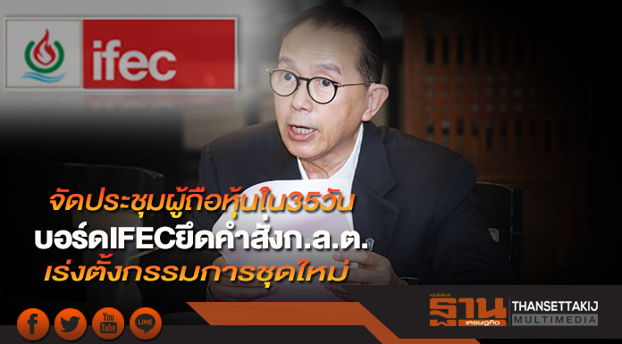 บอร์ด IFEC มีมติเรียกประชุมผู้ถือหุ้นภายใน 35 วัน นับจากวันที่ 22 มี.ค. ตามคำสั่งก.ล.ต. ที่ให้เร่งดำเนินการตั้งกรรมการชุดใหม่-ปรับโครงสร้างหนี้