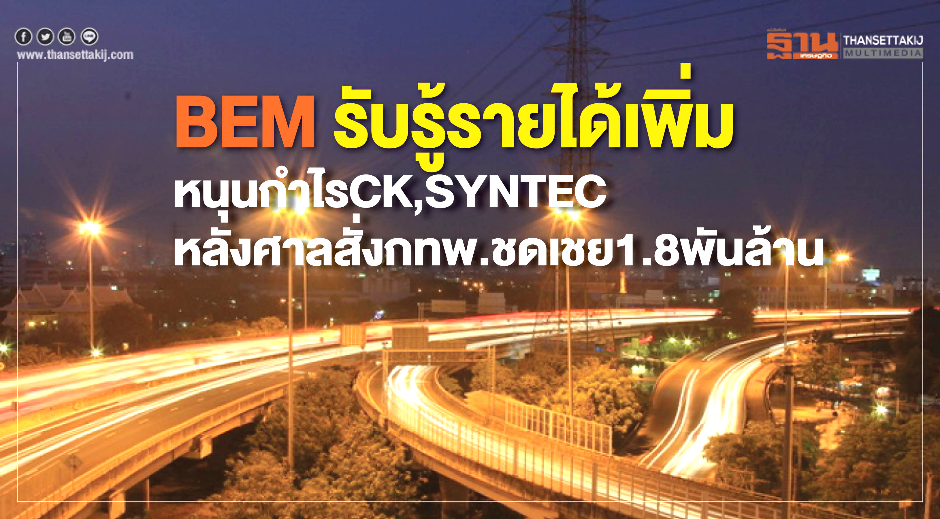 หนุนกำไรCK,SYNTECหลังศาลสั่งกทพ.ชดเชย1.8พันล้าน