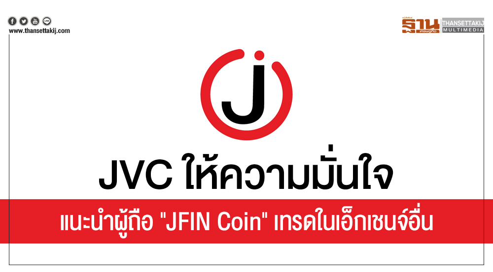 JVC เร่งเดินทางให้ข้อมูลผู้ถือโทเคนผ่านสื่ออิเล็กทรอนิกส์และ Social Media เพื่อให้ความมั่นใจต่อผู้ถือ JFIN Coin สำหรับกรณีข่าวที่ทางสำนักงาน ก.ล.ต. ได้เปิดเผยว่า กระทรวงการคลังปฏิเสธการให้ใบอนุญาต บริษัท คอยน์ แอสเซท จำกัด ซึ่งทำให้การซื้อขายโทเคนจะต้องหยุดลงภายในวันที่ 21 ม.ค. 2562 นี้ ซึ่ง JVC แนะนำให้กับผู้ถือโทเคนนำไปฝากไว้ใน Digital Wallet เพื่อจะนำไปเทรดใน Exchange อื่น ๆ ที่ทาง JFIN Coin จะนำไปลิสต์ ซึ่งจะมีการประกาศต่อไป