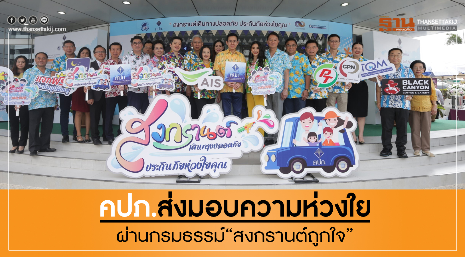 คปภ. ส่งมอบความห่วงใยช่วงเทศกาล "สงกรานต์" ด้วยเบี้ยประกันเพียง 7 บาท คุ้มครอง 100,000 บาท ด้าน บริษัทผู้ผลิตสินค้าอุปโภค บริโภค บริการขานรับ นำไปมอบเป็นสิทธิพิเศษลูกค้าคึกคัก ยอดทะลุ 1.4 ล้านกรมธรรม์