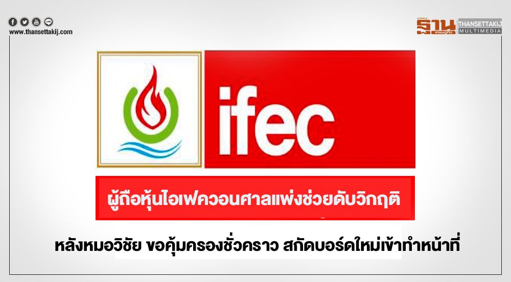 ผู้ถือหุ้น-ผู้ถือหุ้นกู้ไอเฟค ร้องศาลแพ่งช่วยดับวิกฤติ เบิกทางบอร์ดชุดใหม่ เข้าบริหาร เร่งเคลียร์สารพัดปัญหาทันสถานการณ์ หลัง “หมอวิชัย” ขอคุ้มครองชั่วคราว ไม่ให้กรรรมการชุดใหม่ปฏิบัติหน้าที่ ทั้งๆที่ได้รับฉันทามติจากผู้ถือหุ้น ปูดซ้ำใครกันแน่ทุจริต/แสวงหาผลประโยชน์ให้กับตัวเองและพวกพ้อง จนต้องพ้นจากตำแหน่ง