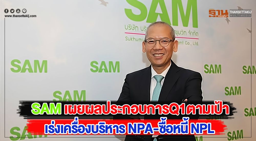 นายนิยต มาศะวิสุทธิ์ กรรมการผู้จัดการ บริษัท บริหารสินทรัพย์สุขุมวิท จำกัด (บสส.) หรือ SAM เผยถึงผลการดำเนินงานของ SAM ณ สิ้นสุดไตรมาสแรกของปี 2562 โดยรวม เป็นไปตามเป้าหมาย SAMได้รับชำระเงินสดรวมทั้งสิ้น 1,600 ล้านบาท ขยายตัวเพิ่มขึ้นเมื่อเทียบกับช่วงเดียวกันของปี 2561 โดยแบ่งเป็นรายได้จาก การจำหน่ายทรัพย์สินรอการขาย (NPA) ประมาณร้อยละ 50 และการบริหารจัดการสินทรัพย์ด้อยคุณภาพ (NPL) ประมาณร้อยละ 30 ส่วนการซื้อสินทรัพย์ด้อยคุณภาพ (NPLs) จากสถาบันการเงินต่าง ๆ เข้ามาบริหารจัดการเพื่อเพิ่มขนาดพอร์ตของ SAM รวมทั้งเพื่อช่วยลดปริมาณ NPLs ของระบบสถาบันการเงิน ยังเป็นไปตามแผนและเป้าหมายที่วางไว้ 16,500 ล้านบาทในปี 2562