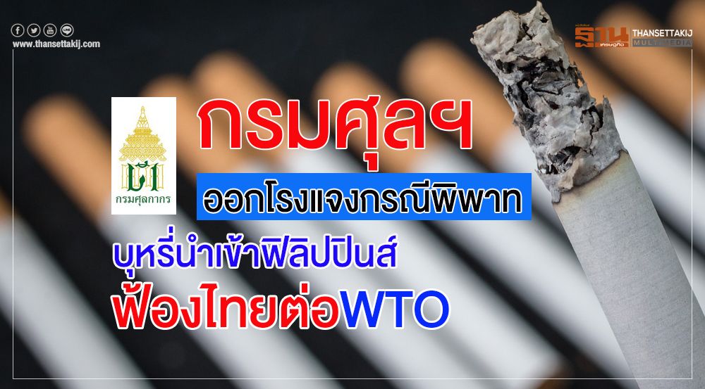 กรมศุลกากรชี้แจงกรณีเว็บไซด์องค์การการค้าโลกเผยแพร่คำตัดสินของคณะผู้พิจารณา ชี้บุหรี่นำเข้าจากฟิลิปปินส์และอินโดนีเซียมีการสำแดงราคานำเข้าต่ำกว่าราคาซื้อขายจริง ระบุที่ยื่นฟ้องไม่สอดคล้องกับกฎเกณฑ์ของ WTO