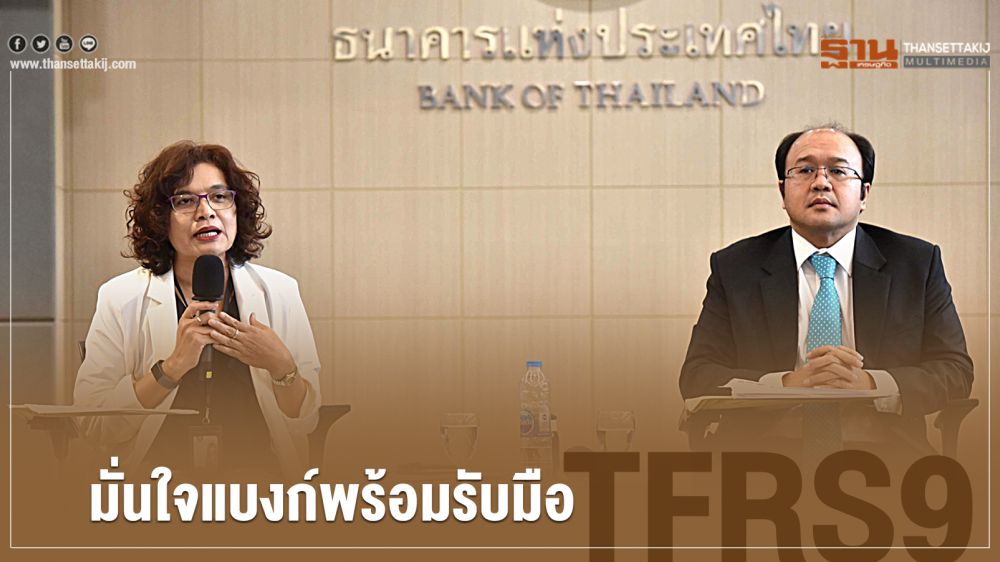 ธปท.ยัน แบงก์พร้อมรับมือมาตรฐานการบัญชีใหม่ TFRS9 มั่นใจไม่กระทบโมเดลธุรกิจ ชี้สำรอง-หนี้จัดชั้นเพิ่ม แต่ไม่น่าห่วง เหตุลูกค้า Stage 1 สัดส่วนสูง 90% แถมสำรองทั้งระบบเฉลี่ยสูง 150%