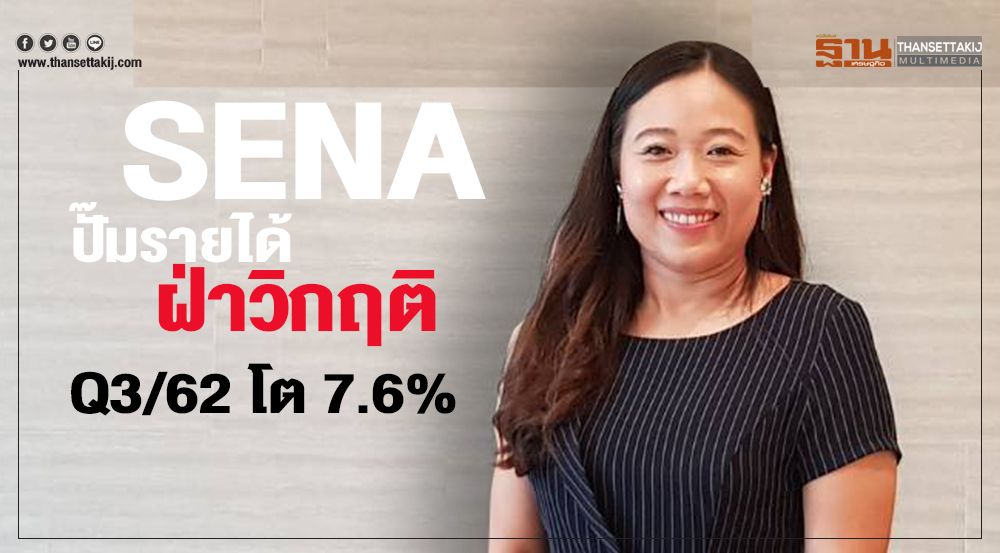 SENA ปล่อยแคมเปญกระตุ้นตลาด โกยรายได้ไตรมาส 3 ปี 2562 แตะ 1,160.6 ล้านบาท โต 7.6% พร้อมโชว์ Backlog ตุนเต็มกระเป๋า 12,860 ล้านบาท ปลื้มรายได้โซลาร์รูฟท็อปยังมาแรง ขณะที่มาตรการ LTV ยังมีผลต่อความเชื่อมั่นของกำลังซื้อที่ยังชะลอการตัดสินใจ ชี้กลุ่มลูกค้า "เรียลดีมานด์" ยังเป็นทาเก็ทสำคัญในช่วงดอกเบี้ยขาลง ล่าสุด ขน 3 โครงการแนวราบ – แนวสูง เปิดตัวใหม่ส่งท้ายปลายปี 62 หวังดันยอดขายตามเป้า