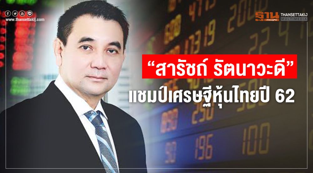 “สารัชถ์ รัตนาวะดี”ขึ้นแท่นเศรษฐีหุ้นไทยปี 2562 รวย 1.21 แสนล้านบาท เผยหุ้นกัลฟ์ราคาพุ่งหนุนนั่งบัลลังก์แชมป์เศรษฐีหุ้นปีแรก อันดับ 2 “นพ.ปราเสริฐ ปราสาททองโอสถ” รวย 6.61 หมื่นล้านบาท อันดับ 3 “นิติ โอสถานุเคราะห์” รวย 4.86 หมื่นล้านบาท ด้าน“เจ้าสัวเจริญ-คุณหญิงวรรณา สิริวัฒนภักดี” ติดทำเนียบเศรษฐีหุ้นหน้าใหม่ IPO