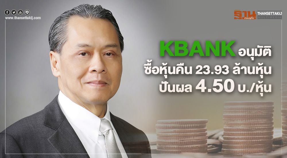 นายบัณฑูร ล่ำซำ ประธานกรรมการ ธนาคารกสิกรไทย หรือ KBANK เปิดเผยว่า คณะกรรมการธนาคาร มีมติอนุมัติให้ธนาคารดำเนินโครงการซื้อหุ้นคืน เพื่อบริหารสภาพคล่องทางการเงินของธนาคารให้เกิดประโยชน์สูงสุดกับธนาคารและผู้ถือหุ้น โดยจะซื้อหุ้นของธนาคารคืนในกระดานหลักของตลาดหลักทรัพย์ฯ สูงสุดไม่เกิน 23.93 ล้านหุ้น หรือไม่เกิน 1% ของหุ้นที่จำหน่ายแล้วทั้งหมด ในวงเงินไม่เกิน 4,600 ล้านบาท ช่วงระยะเวลาในการซื้อหุ้นคืน 10 วันทำการ ระหว่างวันที่ 14-27 กุมภาพันธ์ 2563 ราคาเสนอซื้อจะไม่เกินราคาปิดของหุ้นเฉลี่ย 5 วันทำการซื้อขายก่อนวันซื้อหุ้นคืน บวกด้วยจำนวน 15% ของราคาปิดเฉลี่ย โดยเงินที่ใช้ซื้อหุ้นคืนจะเป็นเงินสดจากสภาพคล่องภายในของธนาคาร