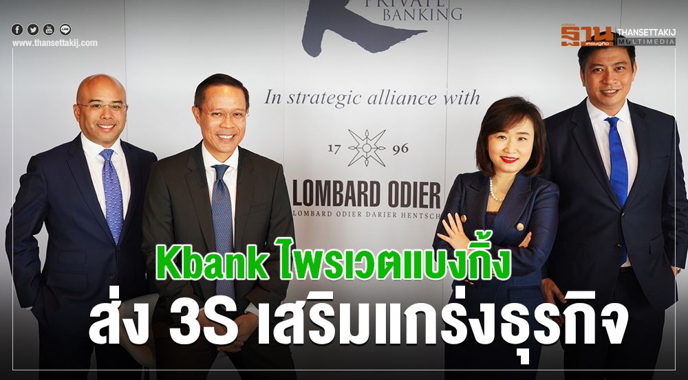 นายจิรวัฒน์ สุภรณ์ไพบูลย์ Private Banking Group Head ธนาคาร กสิกรไทยเปิดเผยว่า ท่ามกลางกระแสการเปลี่ยนแปลงทางเทคโนโลยี และความผันผวนของสภาพเศรษฐกิจ ด้วยความมุ่งมั่นในการดูแลทุกมิติของการเก็บรักษา สร้างการเติบโต และส่งต่อความมั่งคั่งของลูกค้ากลุ่มบุคคลสินทรัพย์สูง KBank Private Banking จึงวางกลยุทธ์เพื่อยกระดับการบริการและคลายทุกความกังวลของลูกค้า พร้อมเดินหน้าการทำงานอย่างใกล้ชิดกับพันธมิตร Lombard Odier ผู้ให้บริการไพรเวทแบงค์ระดับสากล เตรียมขับเคลื่อนธุรกิจและความมั่งคั่งของลูกค้าผ่านกลยุทธ์ ‘3S’คือ 1.ผลักดันให้เกิดการลงทุนที่สนับสนุนระบบเศรษฐกิจและสังคมที่ยั่งยืน(Sustainable investment approach) 2.ปลดล็อคความมั่งคั่งสู่การสร้างผลกระทบเชิงบวกโดยตรงต่อสังคม (New dimension of wealth sharing )และ 3. เปิดประตูสู่องค์ความรู้ด้านนวัตกรรมระดับโลกเพื่อสร้างศักยภาพใหม่ให้ธุรกิจไทย(S-Curve re-innovation)