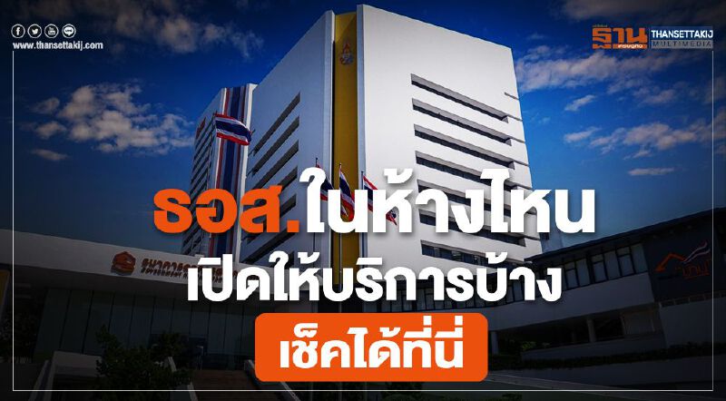 ธอส.แจ้งเปิดให้บริการ 17 สาขาในห้างสรรพสินค้า ในกรุงเทพมหานครและ 5 จังหวัดปริมณฑล ตั้งแต่วันที่ 24 มีนาคม 2563