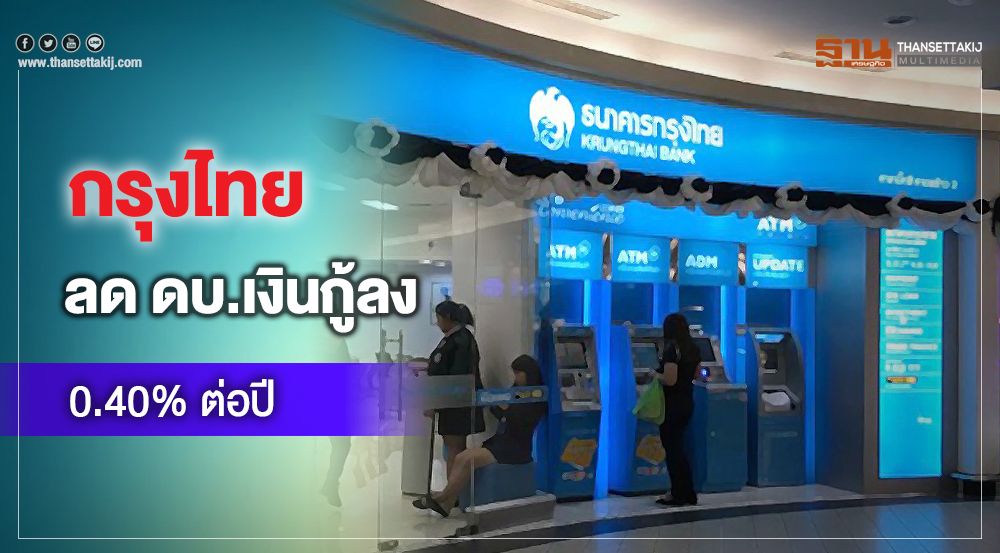 นายผยง ศรีวณิช กรรมการผู้จัดการใหญ่ ธนาคารกรุงไทย เปิดเผยว่า เพื่อเป็นการช่วยแบ่งเบาภาระและลดต้นทุนทางการเงินของลูกค้าสินเชื่อทั้งภาคธุรกิจและลูกค้ารายย่อย ตลอดจนประชาชน ธนาคารจึงปรับลดอัตราดอกเบี้ยเงินกู้ทุกประเภทลงอย่างละ 0.40% ต่อปี โดย MLR เหลืออัตรา 5.375% ต่อปี MOR เหลืออัตรา 6.220 % ต่อปี และ MRR เหลืออัตรา 6.345% ต่อปี โดยมีผลตั้งแต่วันที่ 10 เมษายน 2563 เป็นต้นไป