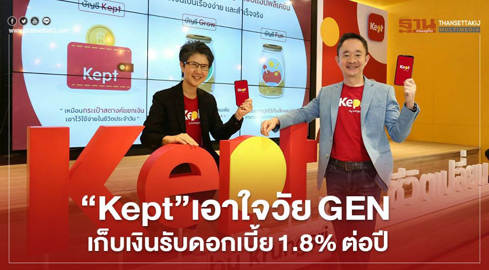 "กรุงศรีตั้งใจช่วยประชาชนคนไทยเก็บออมเงินผ่าน Keptเน้นกลุ่ม "Young Money กับ Growing Money ทั้งGen: ZและGEN:Yคาดว่าภายใน 1ปีจะมียอดเงินฝากแตะ4,000ล้านบาทจากยอดดาวน์โหลด2แสนราย"