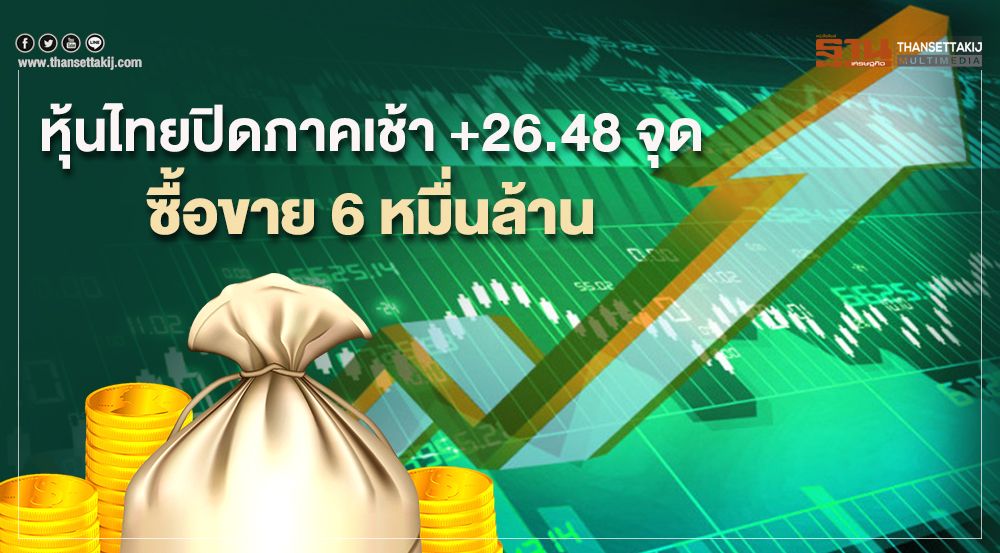 23 พ.ย. 63 ดัชนีหุ้นไทยปิดตลาดเช้าวันนี้ +26.48 จุด หรือ + 1.91% ดัชนียืนระดับ 1,416 จุด มูลค่าซื้อขายรวม 60,021 ล้านบาท โดยระหว่างวัน ดัชนีปรับต่ำสุด 1,395.58 จุด และสูงสุดที่ 1,420.89 จุด