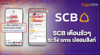 "ไทยพาณิชย์" เตือนภัย! โปรดระวัง SMS ปลอม ส่งลิงก์ไปเว็บไซต์ปลอม หลัง ลูกค้า หลายรายโดนมิจฉาชีพปลอมตัดหลอกให้กดรับลิงก์