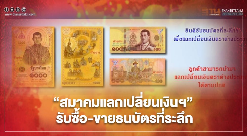 สมาคมแลกเปลี่ยนเงินตราต่างประเทศ ขอแจ้งประชาสัมพันธ์ เรื่อง การรับธนบัตรที่ระลึกเนื่องในพระราชพิธีบรมราชาภิเษก พุทธศักราช 2562 ชนิดราคา 100 บาท และ 1,000 บาท
